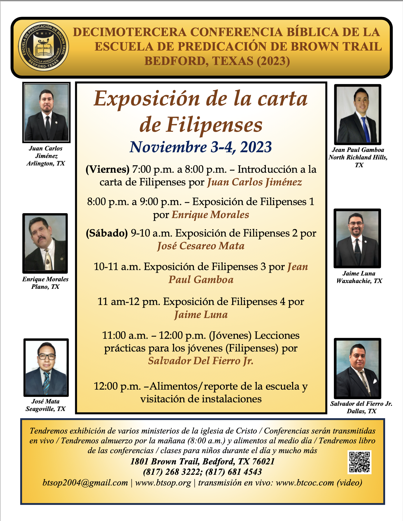 Conferencias Bíblicas 2023 Exposición de Filipenses (2023)Download XIII Conferencias Bíblicas de la Escuela de Predicación de Brown Trail 2023. https://youtube.com/watch?v=CZjMJWgAZXk%3Fsi%3DsOPxMoSbBeGq9cmy Introducción a la carta de Filipenses y Exposición del capítulo 1 https://youtube.com/watch?v=EmH6sgZ0MtU%3Fsi%3DkECEwf7WNGsDhfjL Exposición de los capítulos 2-4 de Filipenses https://youtube.com/watch?v=7jM5IQw5ji0%3Fsi%3DISe82N4sunt3_Jim Share this: Click to share on Facebook (Opens in new window) Facebook Click to share on X (Opens in new window) X Like Loading...